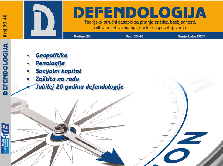 Časopis Defendologija i u ovom broju 39-40 ostao je vjeran svojoj programskoj orjentaciji multidisciplinarnog karaktera. Teme iz geopolitike gdje se razmatra Azijsko-pacifički region koji sa svojim geopolitičkim i geostrategijskim karakteristikama spada u red najznačajnijih prostora savremenog svijeta, pa dinamika i karakter procesa koji se u njemu odvijaju imaju ogromne implikacije na međunarodnu politiku. Nakon toga slijedi rubrika iz oblasti penologije u kojoj se obrađuju teorijske osnove i identifi kacija opštih kompetencija vaspitača u penalnim ustanovama. Uspješna resocijalizacija osuđenih lica nije moguća bez kompetentnog osoblja u penalnim ustanovama.